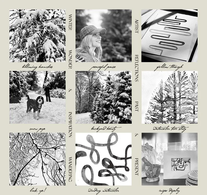 ARTIST REFLECTION :: A Year Closing, A New Season UnfoldingGlistening blankets of snow greet and awaken tired eyes, morning after morning during this exceptionally wintery weather season. Hygge mode is in full swing as we snuggle up in our warmest sweaters, woolen socks and comfy throws, sip pipping tea and gaze in amazement at the frozen wonderland outside. Despite the frigid temperatures, school cancelations, delays and ensuing cabin fever I’m in my glory! When the weather freezes everything to a halt a rare space emerges that offers up a fresh moment of pause and peace. It is simply awe inspiring seeing all that surrounds dressed in white - it is the most beautiful blank canvas moment that stirs my artist instincts with a much needed readiness to begin again. I can’t help but be grateful for this opportunity to take time out of the usual daily hustle to reflect on the year behind and the one ahead.